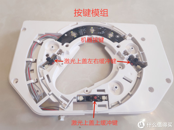 拆掉激光保护盖后,可以清晰的看到激光模组,以及激光保护盖依靠的几个碰撞开关