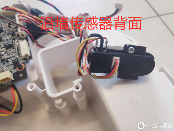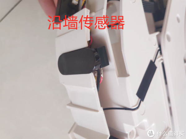 机器左右两侧还各有一个沿墙传感器,这个作用是机器在墙边清扫时通过传感器和墙体持续保持一定距离,避免机器频繁和墙体碰撞
