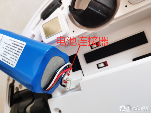 按住连接器卡扣轻轻一拔就可以取下电池,通过电池上的标识可以看出,这款扫地机器人的电池是在比亚迪封装的18650锂电池,容量为5200mAh,电压14.4V ,功率 72Wh