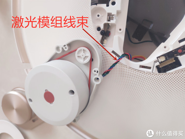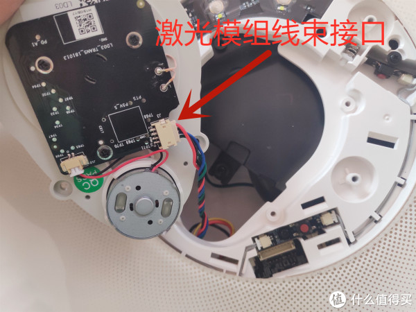 拧下固定激光模组的螺钉,发现激光模组和边刷电机一样是通过线束连接到主板上