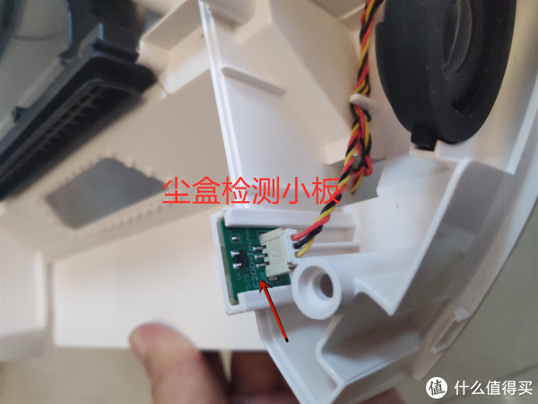 扬声器旁边有一个小的电路版,看位置猜测应该是检测尘盒是否安装的作用