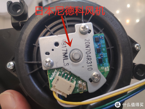 通过风机模组电路版连接器接口的标志可以看出,这个风机是日本进口的尼德科风机,目前市面上的扫地机器人基本都在用这个品牌的风机