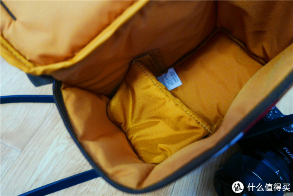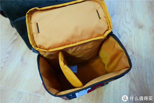 ▼内胆包打开后分为左右两层,中间个分隔软垫可以下折,用于保护里面的镜头,如果一机一镜的话我觉得旁边放个闪光灯妥妥的。