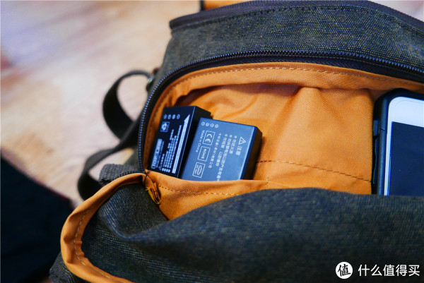 ▼放上电池以及手机,在背包中有pad跟内胆包(装了相机)的情况下可以轻松的在放一个录音笔(或者充电器等)