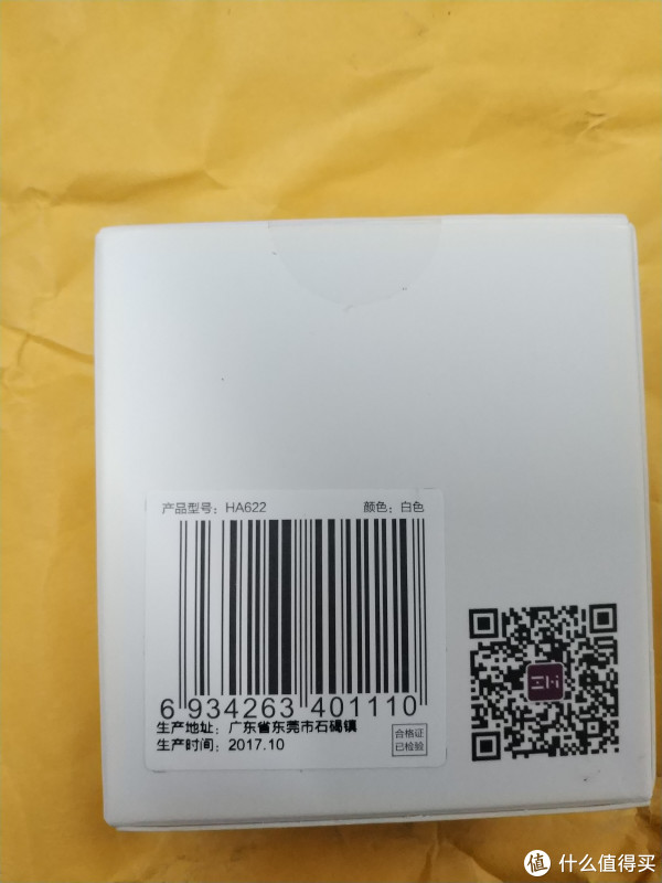 白色盒子风格和小米产品包装一样。开口处有圆形封口贴。