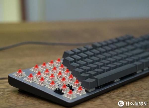 打字体验方面,只谈这款Cherry MX红轴的版本,是很清脆的,回弹非常给力。实测按压力度适中,不会出现不小心压到而误触,也不会需要费力按压。由于是红轴,所以不会有段落感,比较清脆,直上直下。