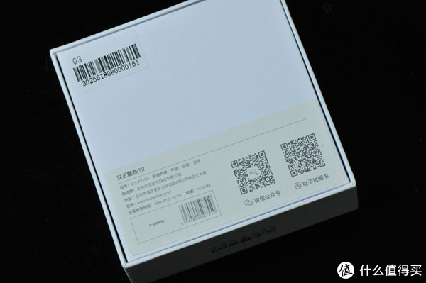 拿到手的G3包装盒很符合现在互联网产品的一贯设计风格:简约的白色背景下,正面印有产品照片,背面是产品相关参数和公众号二维码。