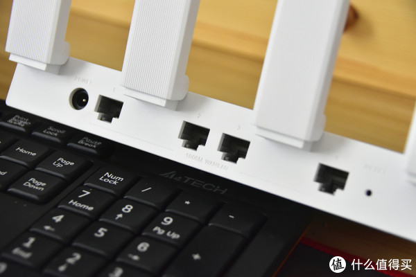 路由器背面两侧留有很多散热孔,并且通过一定弧度的设计,让桌面不会堵住散热孔,提高设备的散热效率。