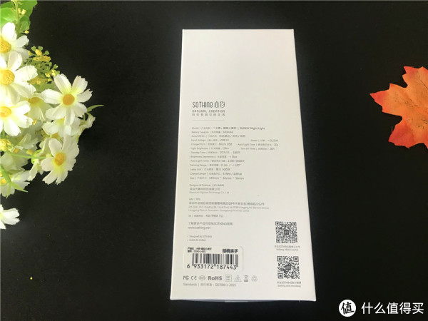 小夜灯的侧面印有向物的logo(SOTHING向物),另一边则印有品名(小明感应小夜灯)。