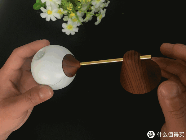 向物小明感应小夜灯外观设计精致大方,采用复古的胡桃木作为基体,纯白色的灯球与桃木色搭配起来给人非常的美感。