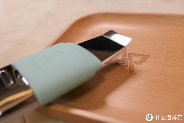 打开包装之后,SVK Kandice超声波毛孔清洁仪的机身就在我眼前了,马卡龙的小清新颜色,握持部分和铲头的金属光亮,不得不说,这款产品首先在颜值上就非常吸引我了。无论是摆在自己的洗漱台,还是作为礼物送人都非常合适。还附送了一个绒布的收纳袋,很贴心。
