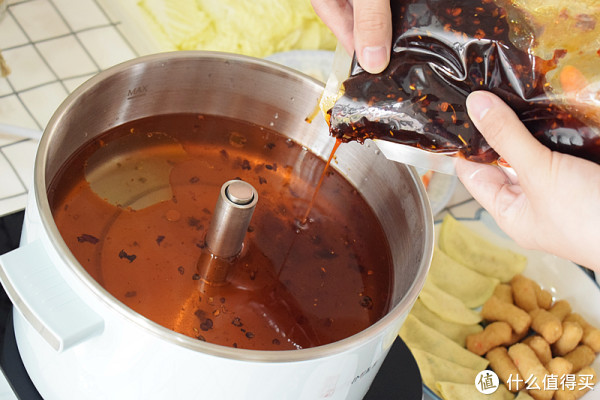 另外,一般的电火锅在夹取的时候,难免会因此而溅到油汁。而一键升起后,就没有了这种烦心事了。可以看到升起后的底料过滤的还是蛮干净的。当然在放水时一定要注意不要太多。不然效果不是太好。