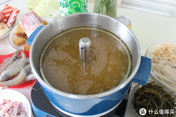 加入准备好的食材,因为有了菜篮的阻隔有效的将熬汤时候使用的各类枸杞 花椒 辣椒等汤料分离,完全不会再有以往吃火锅时不小心吃到辣椒花椒一类的尴尬事情发生。