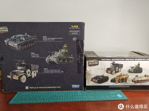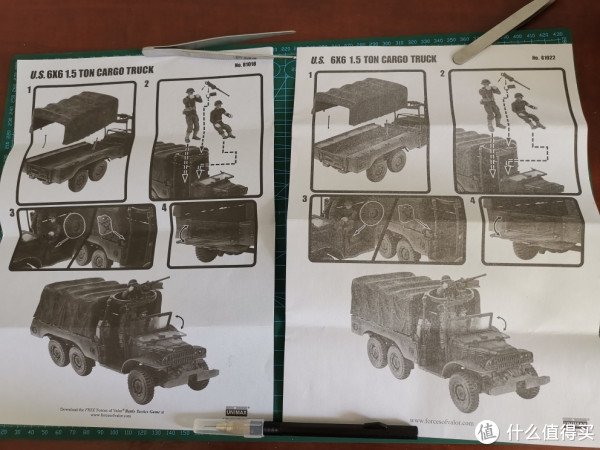 外包装。可以看出81018还延续了之前带地台的中期产品的包装风格,虽然地台已经换成了纸板,但是横开窗盒包装还是能对本体和配件一目了然。81012虽然也是横开窗盒包装,但内部已经变为全吸塑加吊卡。81022上开窗方盒是我最不喜欢的包装,超大的盒子并没有增加多少运输防护性,但是对盒藏党极其不友好。值得注意的是,三款外包装盒上均是简单注明模型原型为US 6×6 1.5 ton cargo truck,而没有Dodge,WC63等标识,估计是没有拿到克莱斯勒的授权。另外只标注了属于1945年的欧洲战区,也就无从考证属于何单位了。