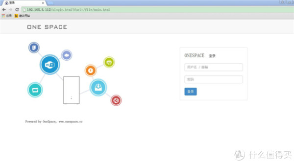 X5上电,接入路由器,开机,确保电脑与x5在同一网段。使用火狐或谷歌浏览器输入http://onespace/进入x5的管理页面,实测这个网址容易出错,另外一种登陆方法是通过登陆x5的ip地址。ip地址可以通过安装onespace手机客户端后点击登录时在最下面的ip地址栏看到。将其输入浏览器后回车,即可进到管理界面。另外通过官方提供的【searchIp】软件可以直接找到ip地址,调用浏览器登录。