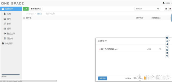 云储存用的最多的自然是上传和下载功能,onespace的操作界面和我们平常使用的网盘界面十分相似,这样的设计上手非常容易,操作也很简单,笔者先测试了上传(测试网络环境:联通ADSL 20M),上传速度在1.5MB/s以上。