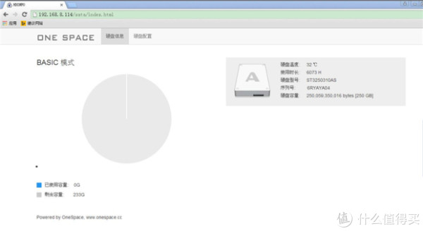 onespace x5虽名为智能微型服务器,但操作起来其实很简单,首先来看下它的网页端,第一次使用时我们需要通过网页端对x5所用的硬盘进行格式化。x5本身没有配备硬盘,需要自备,笔者用闲置的一块250G硬盘先做测试。X5虽标称支持3.5寸的硬盘,但其实2.5寸的笔记本硬盘也是支持的,只是用2.5寸的硬盘的话,原本的托盘支架就用不上了,需要用其他东西固定下2.5寸硬盘,以免摇动。
