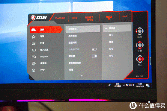 显示器的OSD菜单操控设计在背后,通过这个5向调节遥感控制。如果觉得背后摸着操作不方便的话,这款显示器还支持另一种调节方式,在使用USB HUD线之后,就可以使用MSI的GamingOSD软件,用鼠标进行OSD菜单设置了。十分方便。