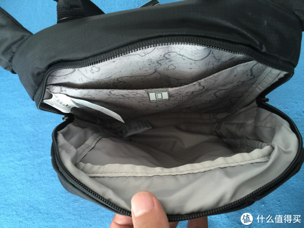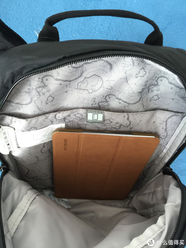 看看包的主包,里面就是一个间隔,还是没有拉链的,可以在隔层的地方放平板。我的MINI ipad放进去绰绰有余啊。看来放ipad也是没有丝毫问题的。从包包和A4纸在一起的照片就可以看出这包的大小。