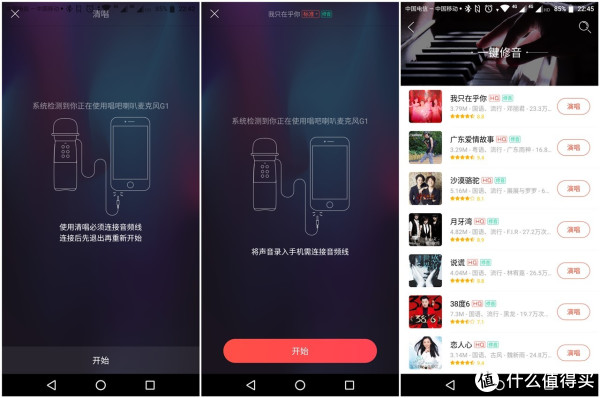 唱吧的打榜和歌曲录制功能,APP会提示用户连接耳机会获得更好的监听效果。利用唱吧喇叭麦克风G1来唱歌,个人体会整首歌曲的声场更好把控,通过麦克风音效调节按键可以快速切换歌曲声音的风格,蛮方便的。