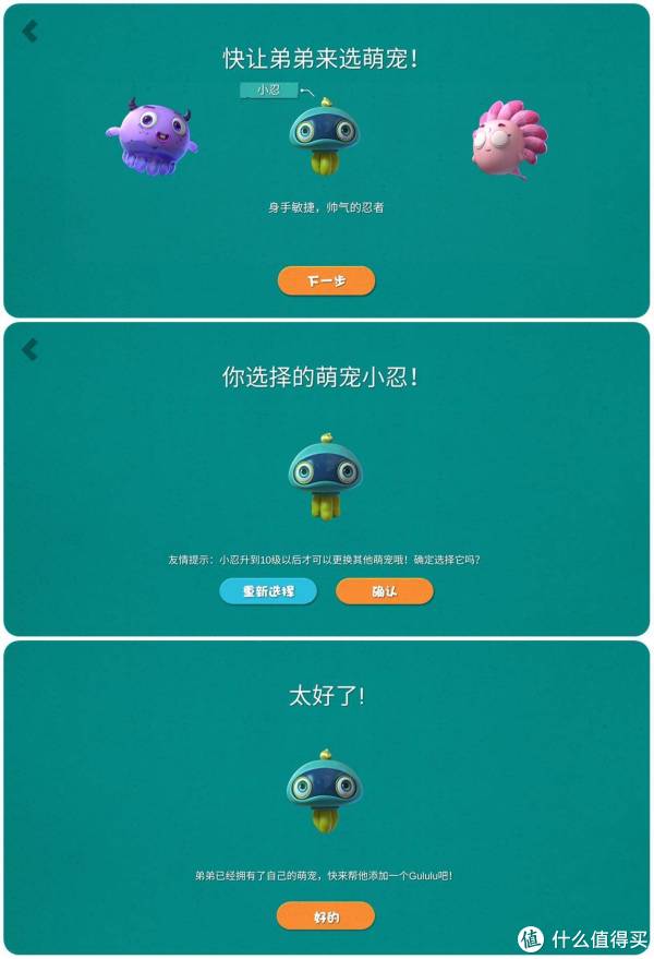 2019版Gululu Go互动水杯最吸引孩子的地方,是可以领取自己的水精灵萌宠,APP目前提供了三个水精灵萌宠,分别是忍者小忍、魔法师胖紫、小公主姗姗,弟弟比较喜欢忍者小忍。