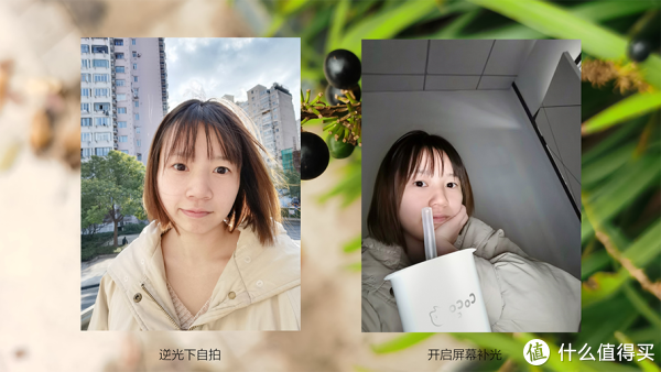 自拍的时候,逆光我们也经常碰到,要是没有对逆光进行优化的手机,拍出来的基本上都是黄脸婆或者包公脸。荣耀 V30 PRO 在逆光上有过调教,AI HDR+ 让逆光拍照也能有比较白皙红润的皮肤。在只有些许光照的房间里,通过把屏幕显示的背景调成白色来补光,也能拍到自己了。