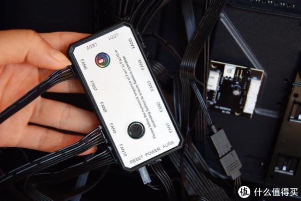 控制器支持外接其他5V RGB配件,设有10个风扇接口。还带麦克风,黑科技满满有没有?灯光可以根据麦克风接收到的声音而改变,可以接到主板的5V RGB进行神光同步。