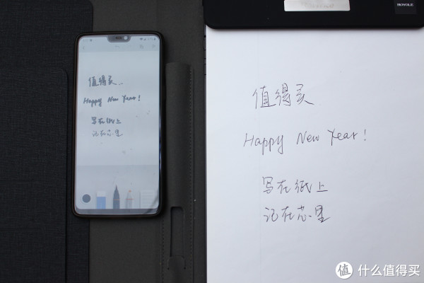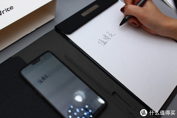 ▲买回来不太舍得用那个原装的本,于是随便找了一页信纸,压在上面开始写,首先笔是油笔的,用惯了中性笔、钢笔那种出水顺畅的感觉,用起它来会有点影响。手写的过程中手机端无延迟的显示,这点很棒。