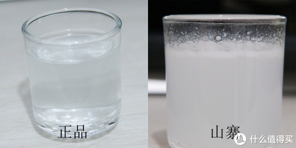 ▲我们取少量膏体放入小杯中,倒入热水并搅拌使其融化,差别十分明显。正品膏体会迅速并完全融化掉,不会留下任何杂质,水的透明度会稍微降低一点,倒掉之后杯子很干净。而山寨版就有点恶心了,山寨膏体搅拌融化后,水质立刻浑浊不堪,并且还有许多细小的杂质沉淀,水面上漂浮着大量细小泡沫,将其倒掉之后,杯子上还残留有鼻涕一样的黏糊胶体。