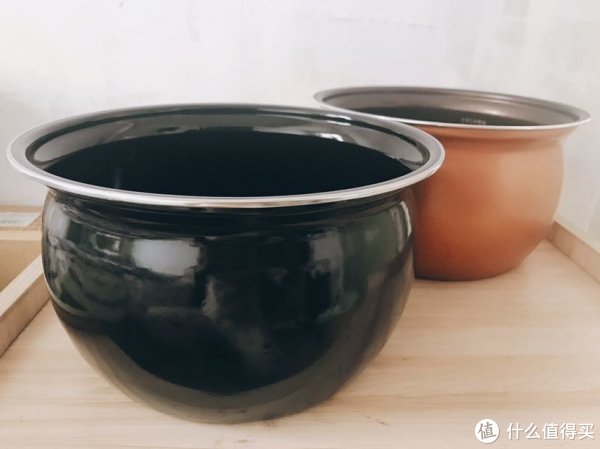 棕色胆里面有稀饭和米饭的刻度,那黑的就准备来煲汤了。