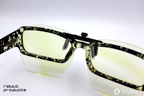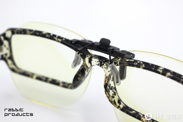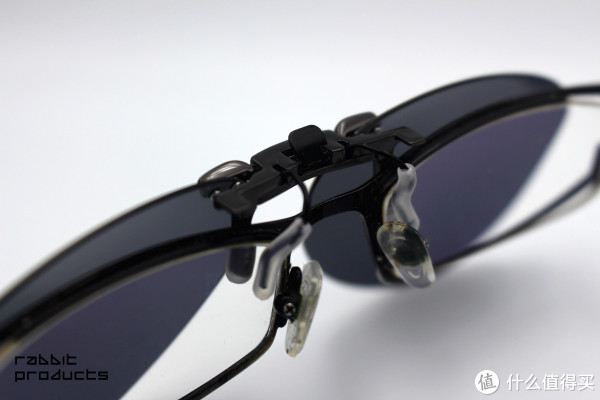 在来看看起固定作用的镜片夹把,整个镜夹采用的是金属材质,非常牢靠,在夹子上套有优质的硅胶套,防滑的同时也能够有效防止夹子划伤镜片,同时也使佩戴起来更舒适,设计的非常人性化。戴上时你是感觉不到上面的夹子,白色透明的硅胶配上黑色的镜框很有档次,可见设计师也是别有用心啊。