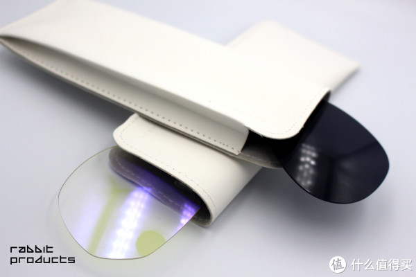 打开箱内,包装整洁,包括有眼镜夹片、眼镜布、白色皮质眼镜袋,两款的配置是一样,包括黑色的眼镜袋也是白色的,很漂亮。从眼镜袋来看,做工非常不错,包括每一个针孔都排的很紧密、整洁,都有点不像这个价位的产品。