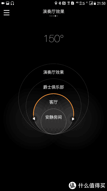 可以选择安静的房间,客厅,爵士俱乐部,演奏厅。定位小喇叭可以在30~180度之间选择。