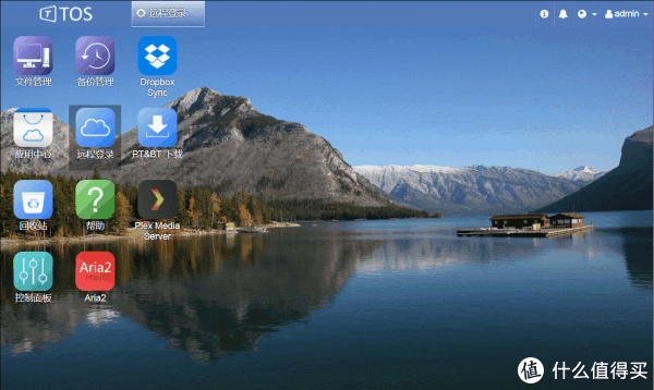 重启之后打开登陆界面,设置管理员密码和安全邮箱,选择RAID模式并创建磁盘阵列,然后就进到TOS系统界面了。进到TOS的第一步是到应用中心安装自己所需要的APP,我选择安装了Plex Media Server、BT/PT 下载和Dropbox Sync。此外目前应用中心常用的APP还有Aria2下载器、视频监控、WordPress、iTunes服务器、DLNA服务器、SVN服务器、百度云盘、多媒体中心、邮件服务器、MySQL服务器等。