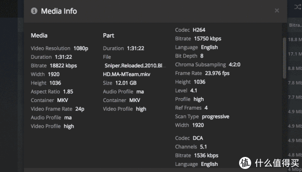 这样的结果是否说明这台NAS用作Plex媒体服务器不行呢?其实也不是。因为Plex媒体服务器给客户端串流的时候,绝大多数是不经过转码的,只有在客户端不支持所播放文件里的视频或音频编码(音频转码并不占用太多CPU)的时候才需要转码,实测另外一些比特率接近18Mbps的电影因为其中的视频不需要转码,播放起来毫无压力,CPU使用率也并不特别高。所以你是否需要一台CPU更强劲的NAS取决于实际需求,如果大多数视频文件都是10G以内的,基本上没有问题,但如果喜欢下载4K分辨率动辄几十G的,这颗CPU用作Plex转码就不够了。
