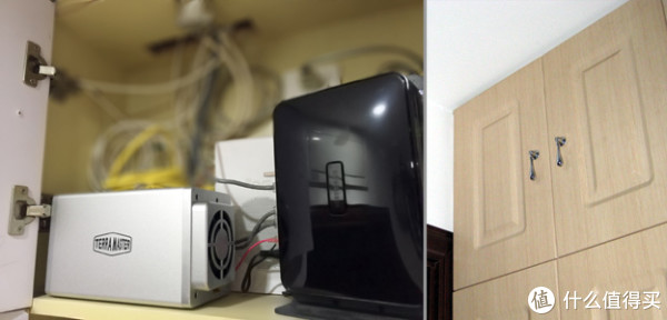 至于体积,真是出乎意料的小巧。原本以为弱电箱(里面各种线缆太乱强行打码)已放不下NAS,没想到放进去正好,门关上后都感觉不到NAS的存在。而且即使关在这样不透风的空间里与路由器、光猫为伴,F2-220的温度还能维持在40左右,想要煎个鸡蛋恐怕是门儿都没有。噪音部分,刚开始用两块西数绿盘的时候还能留意到硬盘读写的声音,换了红盘和酷狼之后很难留意到(可能跟关了弱电箱门也有关系)。