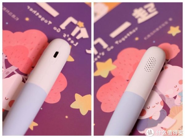 点读笔看上去比较圆润,几乎没有棱角,所以不用担心宝宝在玩耍的过程中伤到手,外表的橡胶摸上去也比较舒适,整体手感还是挺不错的!