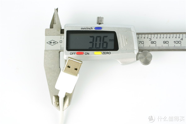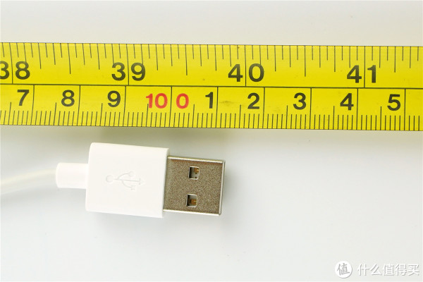 USB-C公头为普通的USB-C接口,但是USB-A这端可就跟普通的USB-A接口不太一样了。这条数据线的USB-A接口舌片比较薄,并且处于中间位置。