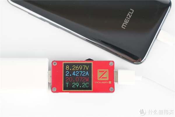 使用支持PE快充的充电器+酷派数据线充魅族16th Plus手机,电压8.26V,电流2.42A,功率20.07W,可开启PE快充。