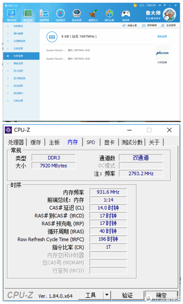 8G的内存容量采用的是镁光的LPDDR3颗粒,1867MHz的频率,但有意思的是采用了4G×2的双通道组合,可以提升一定的性能表现。