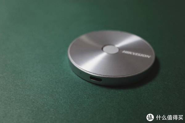 产品就是这样了,简洁的圆形带了海康威视的logo,中间是指纹识别模块。金属拉丝的反光仿佛成了产品的自带花纹,对称的扇形反光非常美。