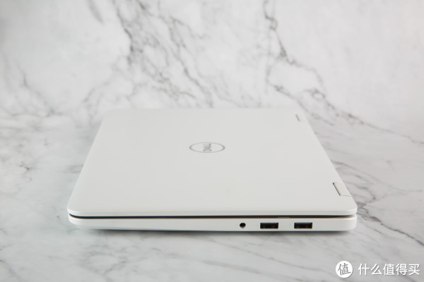 ▼DELL这款灵越 11 3195二合一翻转本拥有灰色和白色两种配色,我们拿到的是白色版本。笔记本的A面和C面进行了仿金属涂层处理,这种表面材质配合白色有一个优势是不易留下难看的指纹。