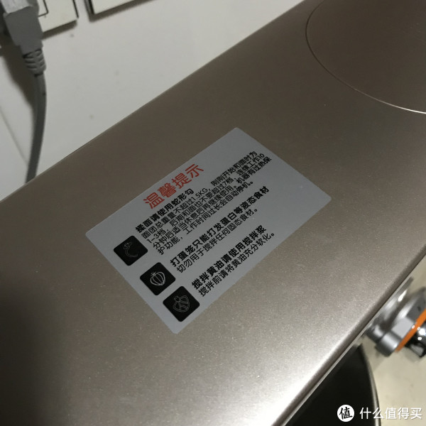 机顶贴有警告,1.和面重量最大1.5kg;2.打蛋笼只能大液态食材;3.搅拌黄油前需融化。这三点提醒对天天与面粉、黄油打交道的人来说是基本常识