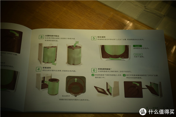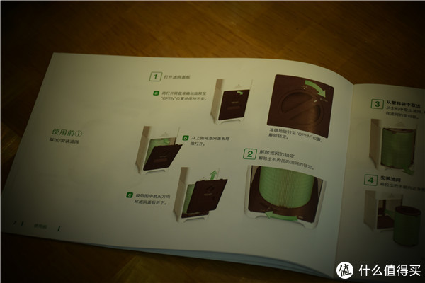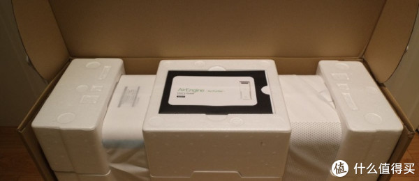 4.5打开包装后,发现净化器本体由上、中、下三层泡沫保护中,中间泡沫上方为说明书