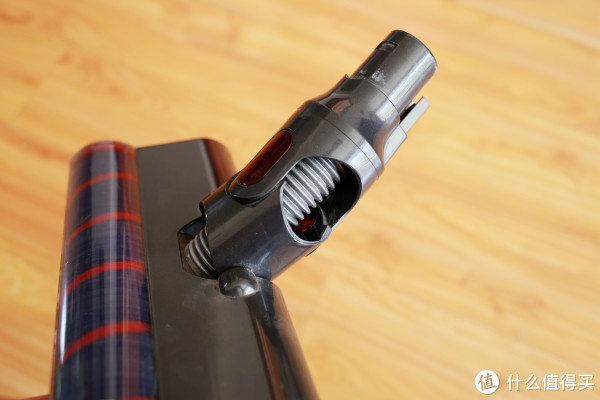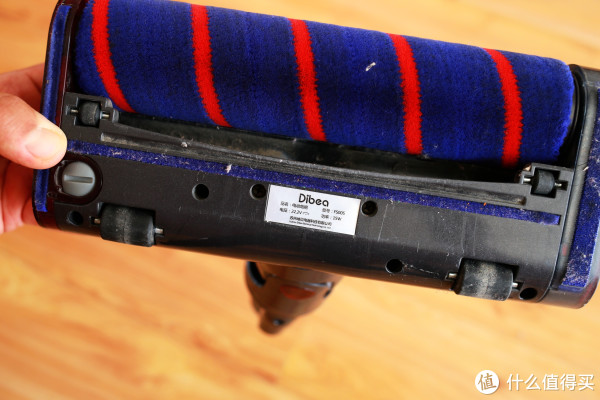 吸尘滚轮是聚酯纤维的,吸水效果很不错。吸尘口比较大,比大拇指指甲要大两圈,一般的杂物都能吸入。具体效果,我们后面再来研究吧。