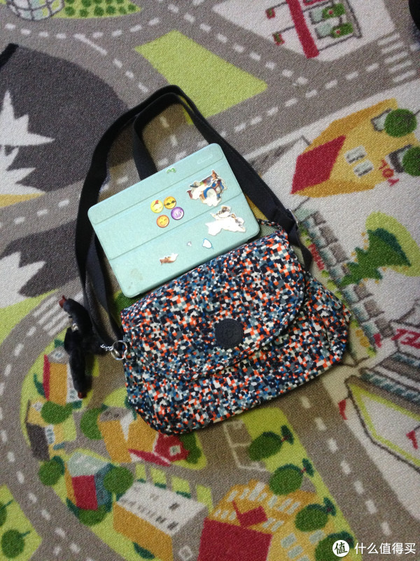 这个包买来就是为了天天背个ipad午休看电视的,有请老迈的iPad mini 1出场,上面的粘纸是儿子贴的
