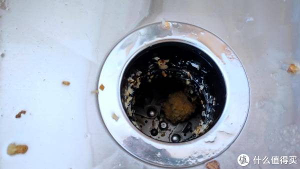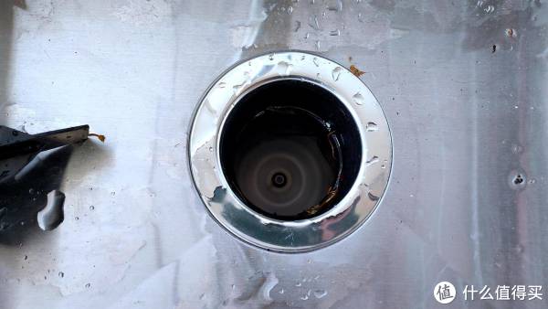 已经处理好垃圾之后的内部样子,直接可以看得到钝刀刀片,如果有没有处理掉的大骨头或者有韧性的根茎、藤蔓或者其他东西,可以在停止垃圾处理器之后,手伸下去,拿出来扔掉