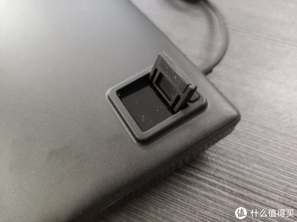 ▲没有走线槽,键盘背面显得格外简洁,左右是两个支撑脚,底部为三个橡胶防滑垫,摆放比较稳定。