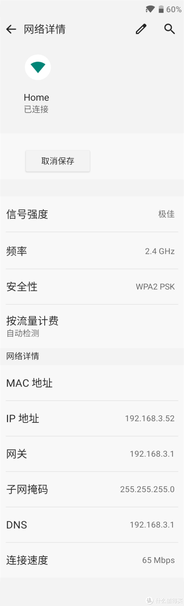 Device info HW显示的信息,其中Wi-Fi连接速度65Mbps