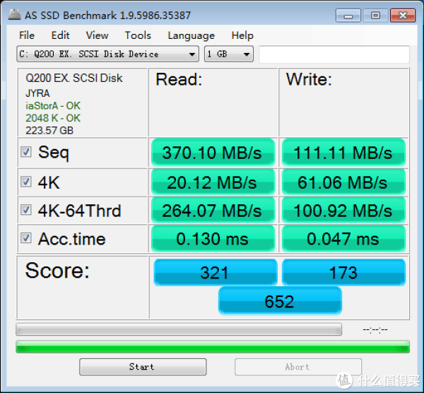 ▼跑个分看看,额,652分,有点差的,这个写入成绩不是太正常